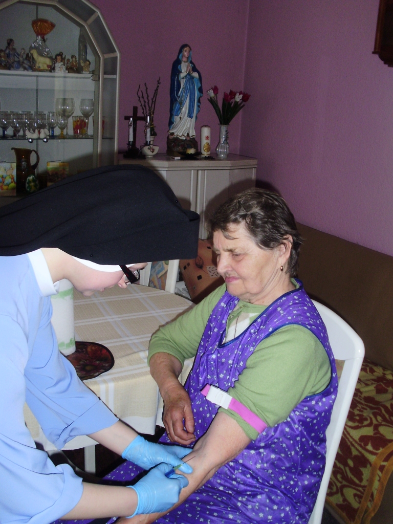 Pracujemy w Caritasie jako pielęgniarki obejmując opieką długoterminową obłożnie i przewlekle chorych przebywających w domu, którzy ze względu na istniejące problemy zdrowotne wymagają