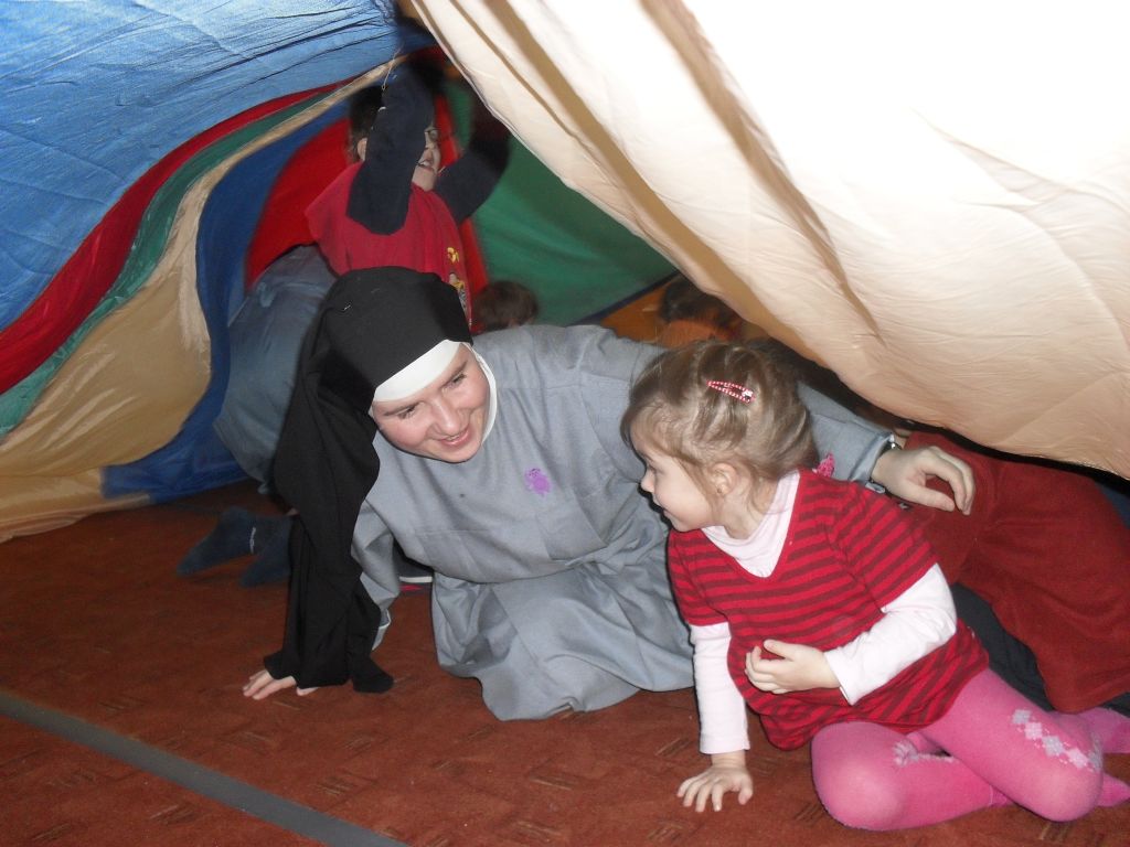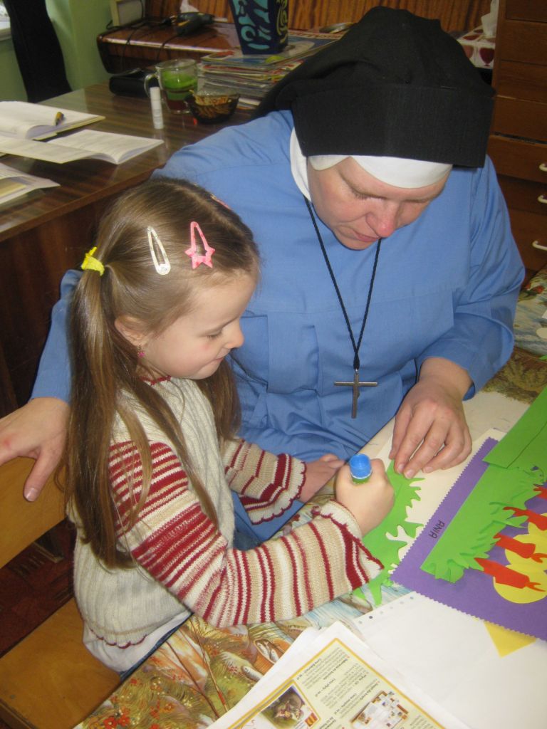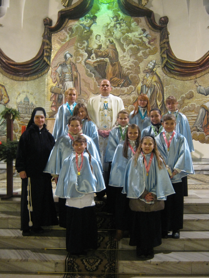 Przy parafii posługujemy jako zakrystianki, prowadzimy scholę oraz grupę Dzieci Maryi.